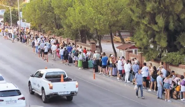 30 Ağustos Zafer Bayramı hafta sonu ile birleşince Midilli Adası’nı tercih eden tatilciler sınır kapısında yüzlerce metre uzunluğunda kuyruk oluşturdular.